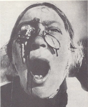 One of the most powerful examples of that imagery is “Three studies for figures at the base of a crucifixion”, a painting from 1944 by Francis Bacon. Like Picasso, whose crucifixion imagery strongly influenced him, Bacon used the image devoid of any religious significance as an “armature on which to hang feelings about human behavior,” as he claimed. Bacon’s representations of tortured humanity, of man’s isolation, what has been called Bacon’s iconography of disaster, are not really political. In fact John Berger, the eminent leftist critic, who championed a Courbet derived realism and saw all art as weapon and all expressions of individualism as decadent, condemned Bacon’s paintings for their supposed lack of indignation. [12]